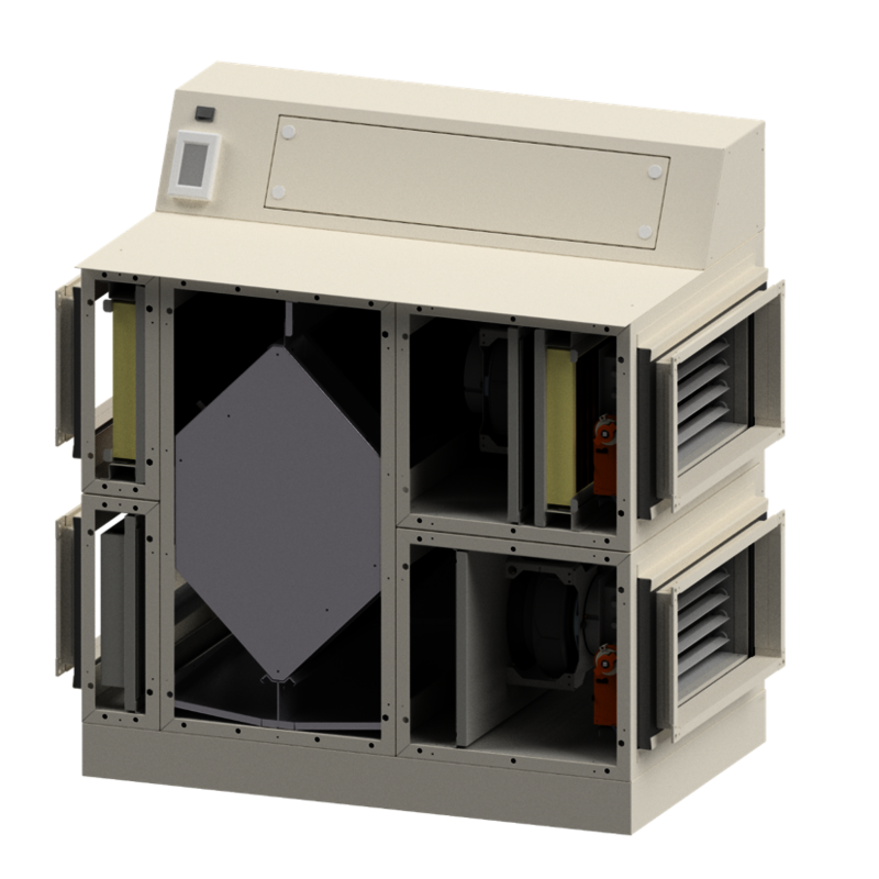 - Highly efficient counterflow heat recovery, optionally with humidity recovery